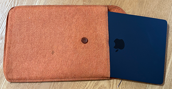 スティーブ・ジョブスが初めてMacBook Airを紹介したとき、事務用の封筒に入れてきたのです。これほど薄いというデモンストレーションでした。で、この初代MacBook Airが売り出されてすぐに、このフェルトでできた封筒様のMacBook Airのケースを売り出した業者がいて、当方はAirとともにこれを購入したのですな。以来、ずっとこの袋を使っています。緩衝材があるわけではない。