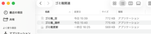 4つ.app を作る。ゴミ箱.app,ゴミ箱_空.app、ゴミ箱_満杯.app、ゴミ箱更新.app である。以下では.app を省いている。