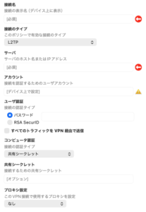 接続のタイプ:L2TP (今回は)