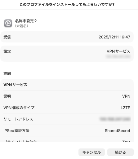 macOS Tahoe でVPNの設定 その2