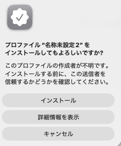 このプロファイルをインストールしていいか?ときいてくるから 続ける をクリック。
